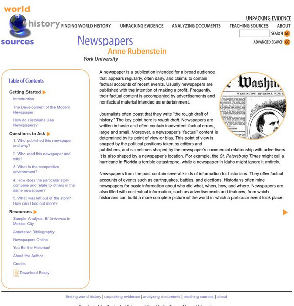 Discover how historians use newspapers and learn about the development of the modern newspaper. Get answers to many questions about different newspapers.