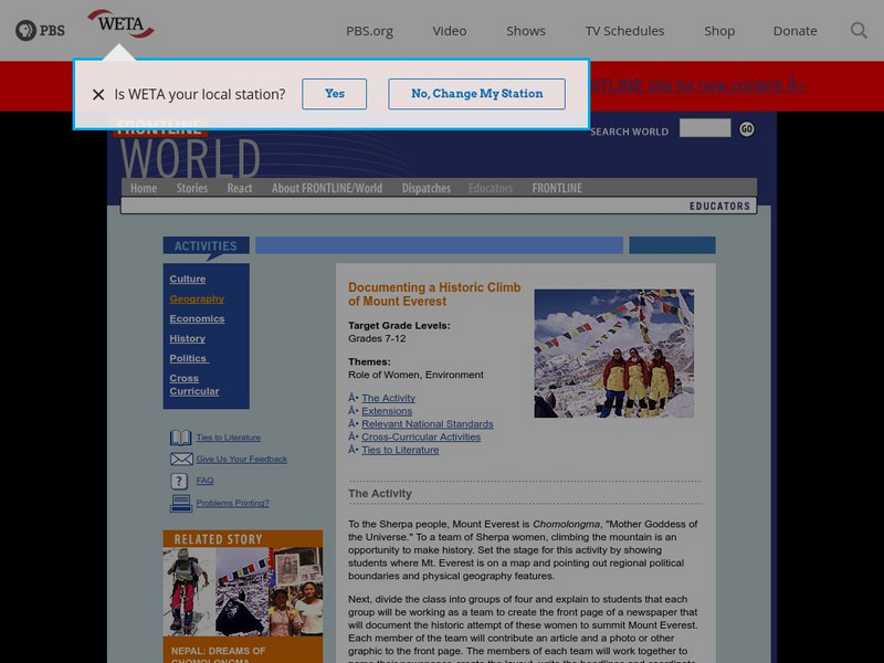 Classroom activities for students to understand and identify the role of women in different cultures, such as the Sherpa women in this video who make history climbing Mount Everest.