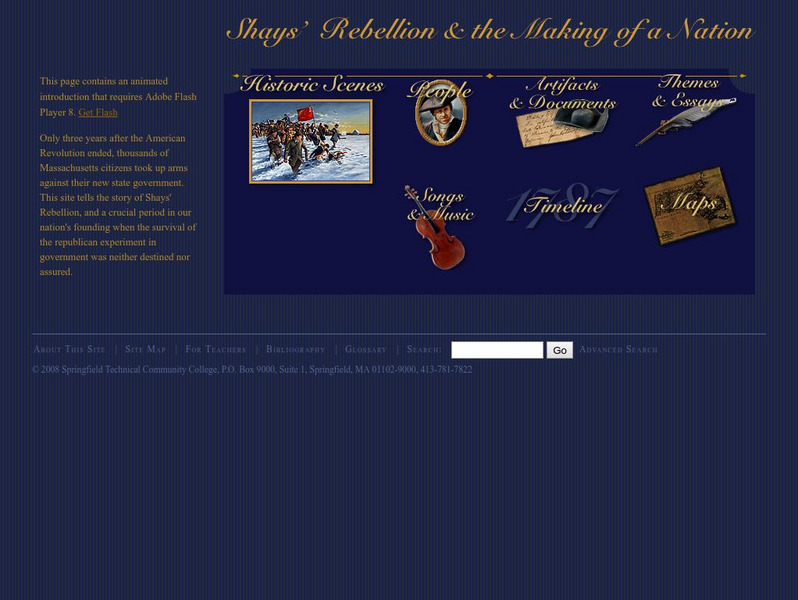 An extensive site that tells the story of Shay's Rebellion which took place after the Revolution in Massachusetts. Includes historic scenes, artifacts, documents, people, themes and essays, maps, songs and music, a timeline, and videos,...