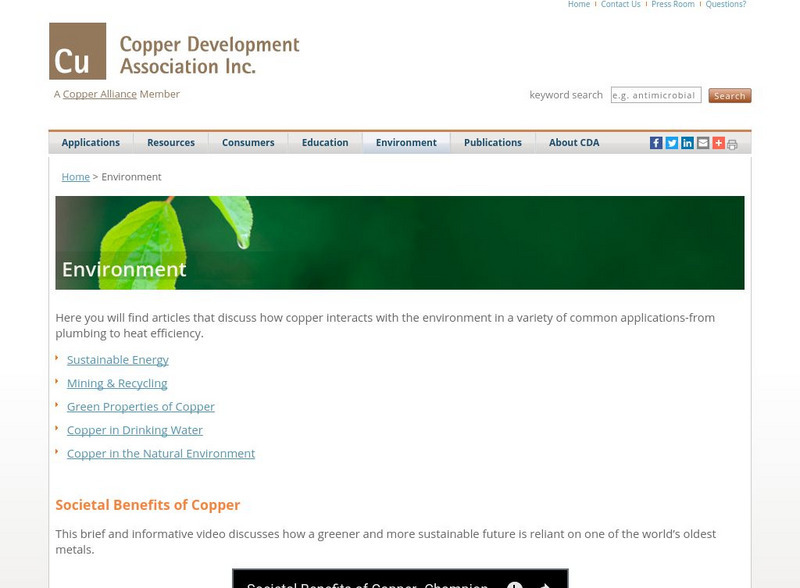 This page provides information on copper and the environment, copper's role in human health, copper recycling, and other topics.