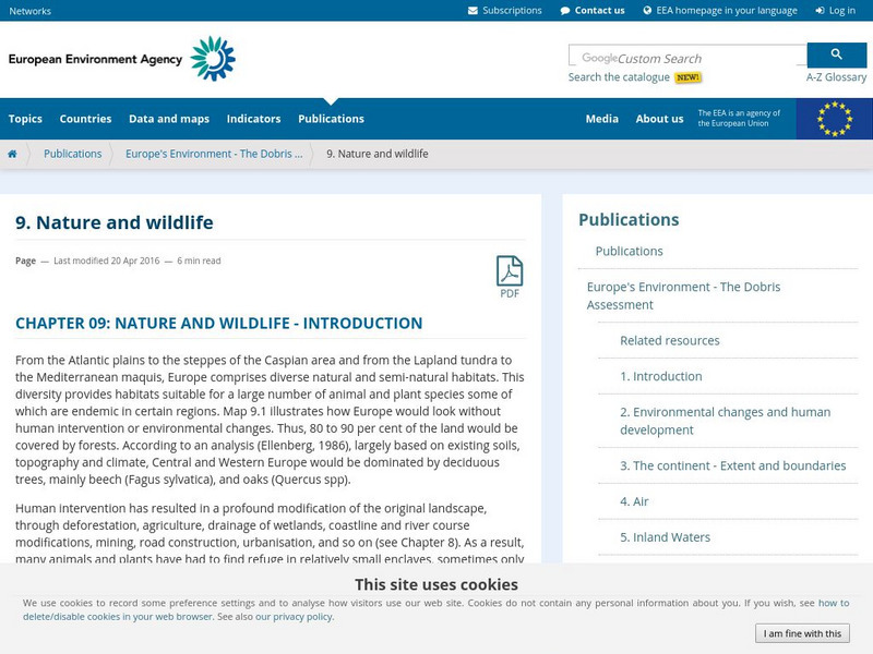 This site has the summary of a report on nature and wildlife in Europe. Read about the natural environment, changes resulting from human activity, or access a table of contents to read more.