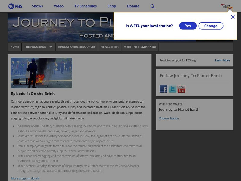 A part of the PBS series "Journey to Planet Earth," this section examines "how severe environmental problems can lead to political crises and increased hostilities around the world." Includes video clips and educational resources.