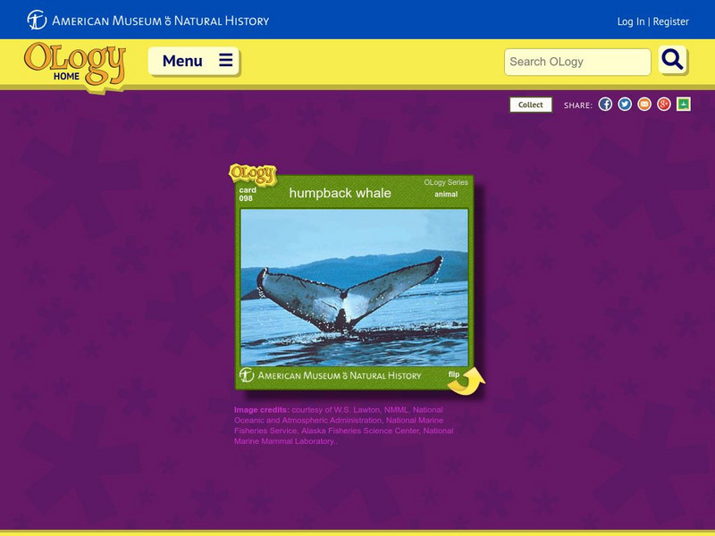 OLogy cards are like virtual baseball cards about all kinds of science topics. This one is about the Humpback Whale and it contains information about the habitat, diet, and other ecological information. See if you can answer a few...