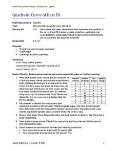 Class members create a table of the number of chords that can be drawn given the number of points on a circle. Pupils analyze the data created, find a function to fit to it, and use the function to make further predictions.