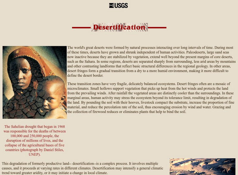 Read about the destructive process of desertification and how this impacts human beings, how satellite images provide data to document what is happening, and some solutions that have been developed to combat the problem.