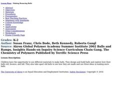 Second graders analyze the composition of different balls. In this science instructional activity, 2nd graders create their own balls using materials provided by teacher. They demonstrate what their invention can do.