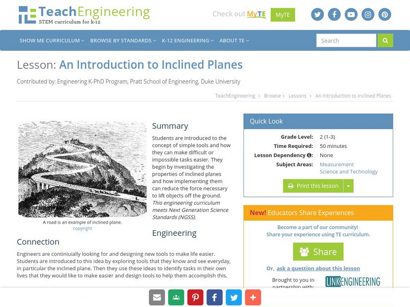 [Free Registration/Login may be required to access all resource tools.] Discusses what an inclined plane is, its mechanical advantage, and how it changes force to make work easier.
