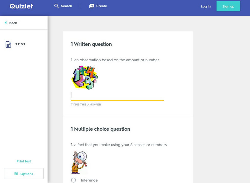 Quizlet: 5th Grade: Observation vs. Inference Proficient: Match