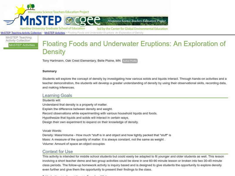 Serc: Floating Foods and Underwater Eruptions: An Exploration of Density