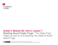 Freaky frogs are the focus of a lesson plan designed to boost reading comprehension skills using text features and asking and answering questions. Informational text and a poem supply scholars with animal-related vocabulary and facts. A...
