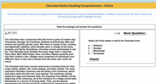 An interactive practice challenges scholars to read an informational text then answer 10 multiple-choice questions. The topic of the text is the Cherokee. The resource provides a report once the practice is completed.