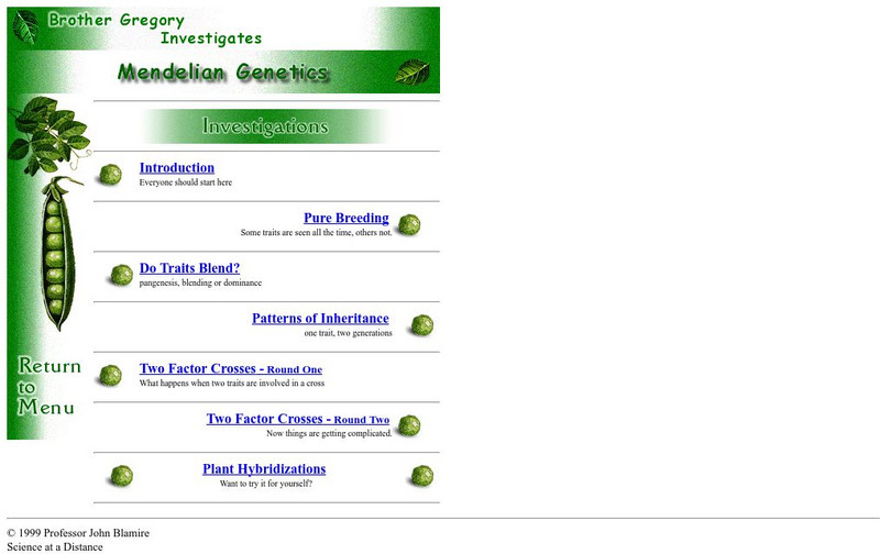 This set of seven activities will proved a thorough review of Mendel's work. The interactive experiments are easy to follow and drive home the concepts.