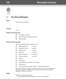Here's proof that small-scale labs lead to big-time learning. Introduce acid-base interactions to middle school scientists through a microscale chemistry lab. Pupils combine a variety of solutions and use indicators to obtain approximate...