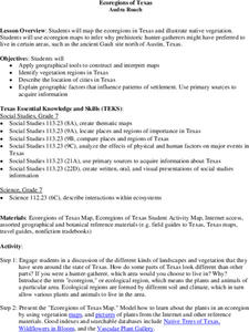 Seventh graders discuss why hunter-gatherers might have favored certain areas in which to live. In pairs, they research specific regions to examine in depth. Students present their eco-region vegetation findings (in this case Central...