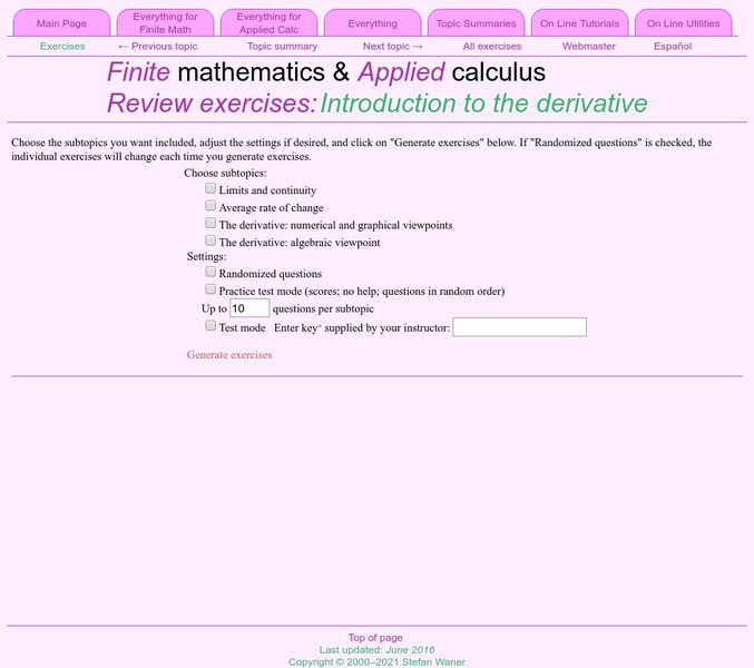 Explore the world of Calculus through differentiation. Focusing on areas such as limits, tangents to curves, and derivatives, this site shows you how to solve problems based on the discoveries of Sir Isaac Newton and Gottfried Leibniz....