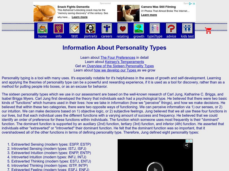This site is a personality page with easy to understand description of the 16 personality types and their development. Also gives practical applications for personality types.