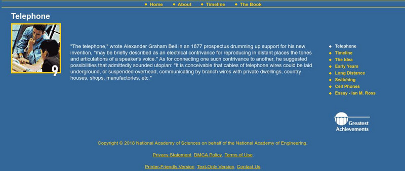 This resources features an overview of the history behind the technological development of the telephone today and a timeline showing the important dates.