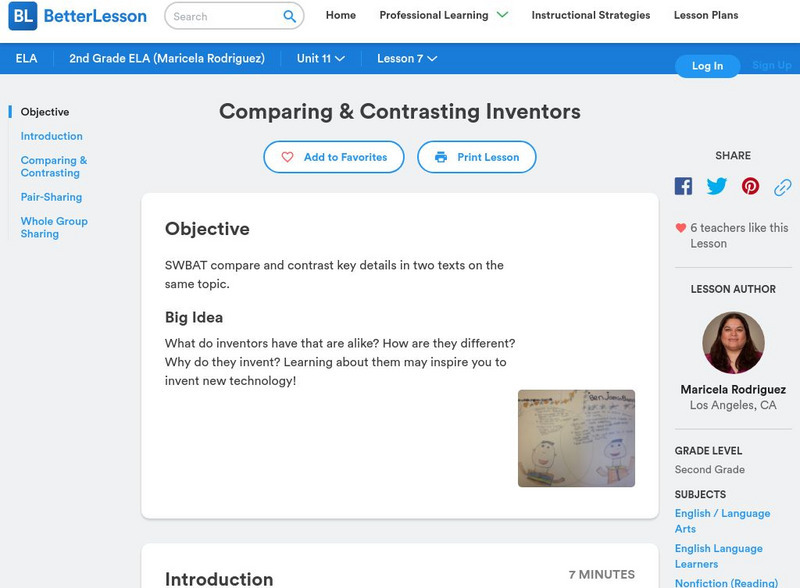 What do inventors have that are alike? How are they different? Why do they invent? Learning about them may inspire you to invent new technology! In this lesson, students will compare and contrast key details in two texts on the topic of...