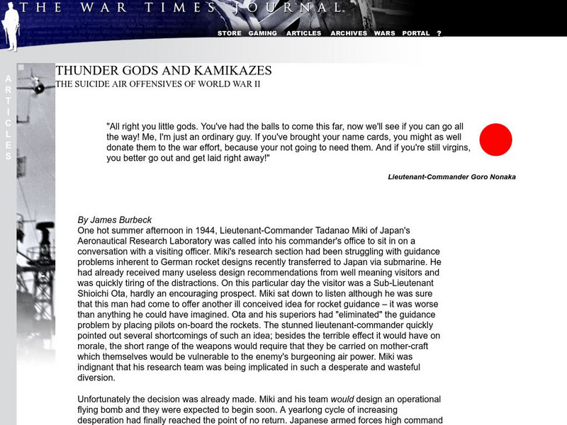 War Times Journal: Thunder Gods and Kamikazes: Suicide Air Offensives of Wwii