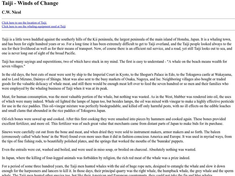 A thorough discussion on the topic of whaling in Japan during the time of Commodore Perry's expedition. Essay also discusses the reasons leading up to the desire to open Japan to the Western World.