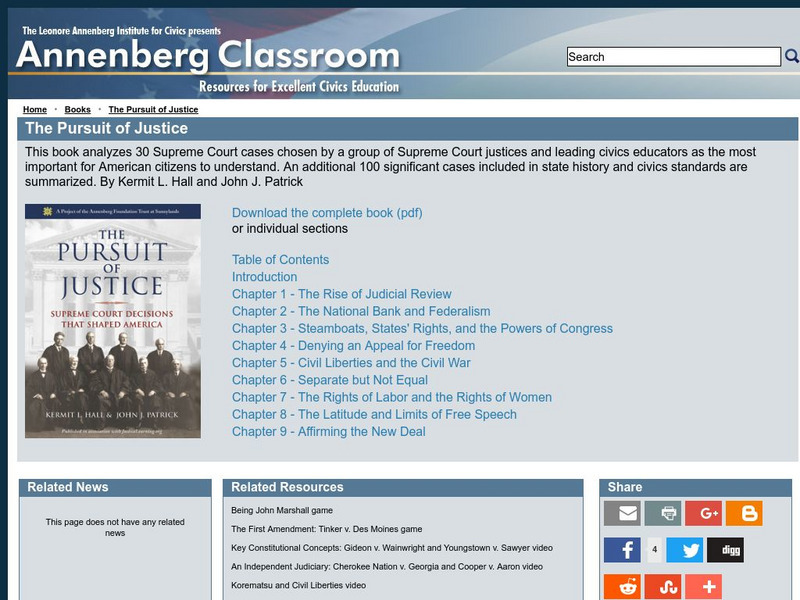 This book analyzes 30 Supreme Court cases chosen by a group of Supreme Court justices and leading civics educators as the most important for American citizens to understand. An additional 100 significant cases included in state history...