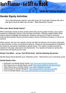 A male nurse? A female welder? Unequal pay? The "Glass Ceiling?" A 22-page Gender Equity Activity Book asks participants to examine the effects of gender role stereotyping on career choices. Class members also update job titles...