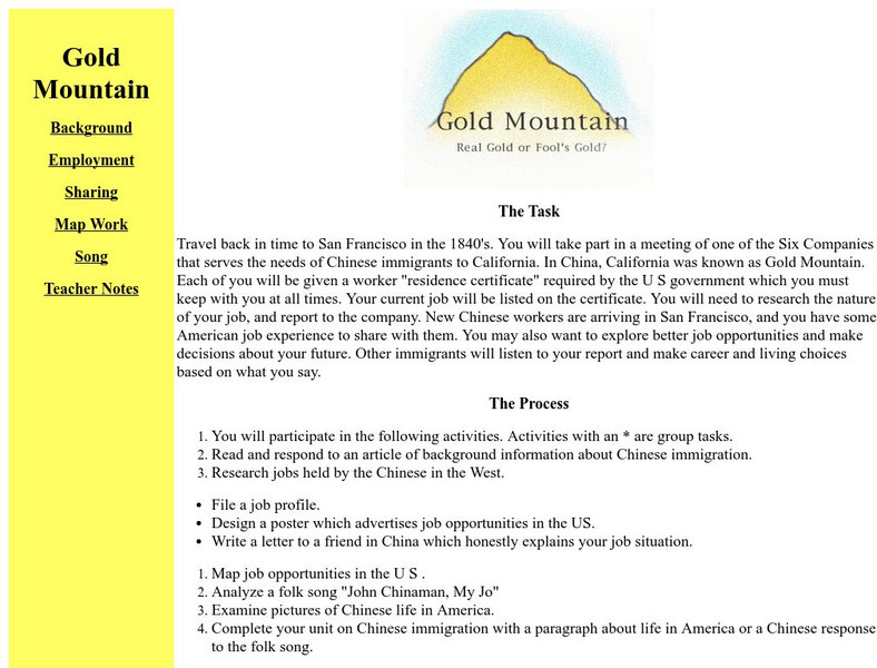 Score: Gold Mountain Webquest