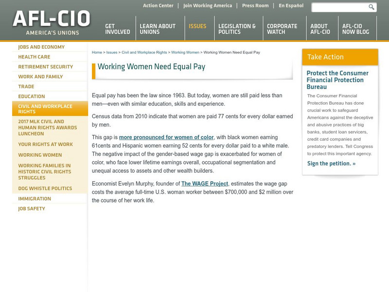 Afl Cio: Time for Working Women to Earn Equal Pay