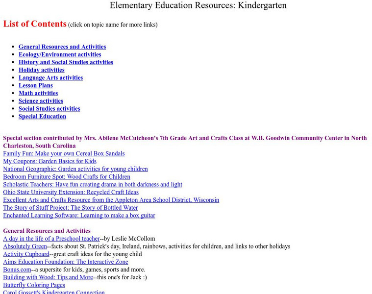 University of Pittsburgh: Elementary Education Resources: Kindergarten