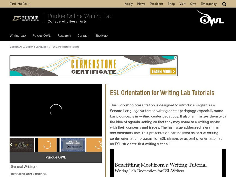 Purdue University Owl: Writing Lab: Orientation for Esl Writers