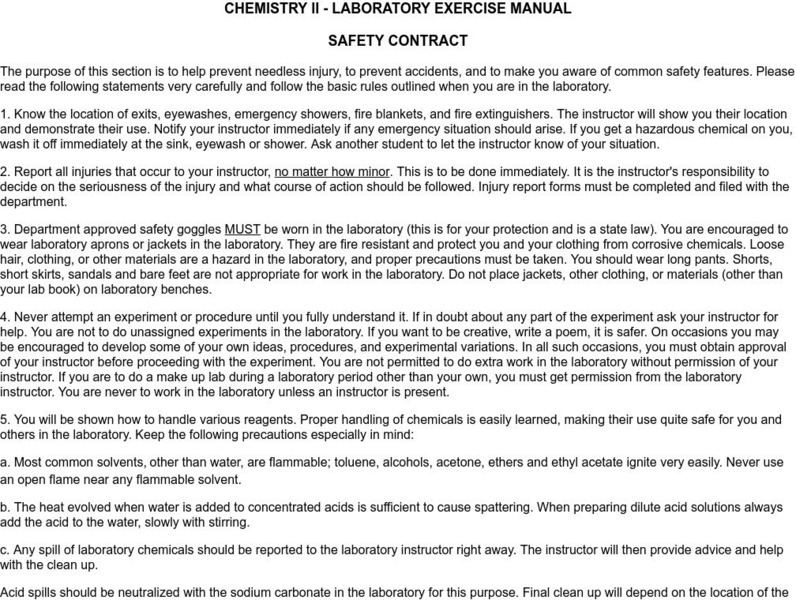 A well written safety contract for general chemistry lab.
