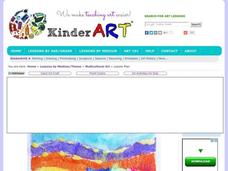 First graders design projects based on work of Van Gogh. In this Van Gogh arts lesson, 1st graders review and and model artwork prior to creating their own landscape project in watercolor.