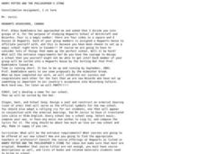 In this Harry Potter worksheet, students complete a project. Students design their own school with the curriculum, its physical location, design and management, school uniform, school rules, recreation and entertainment, occupations and...
