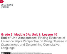 End of Unit Assessment: Finding Evidence of Laurence Yep’s Perspective on Being Chinese in Dragonwings and Determining Connotative Language