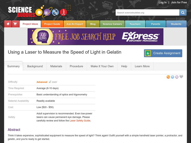 Science Buddies: Using a Laser to Measure the Speed of Light in Jello