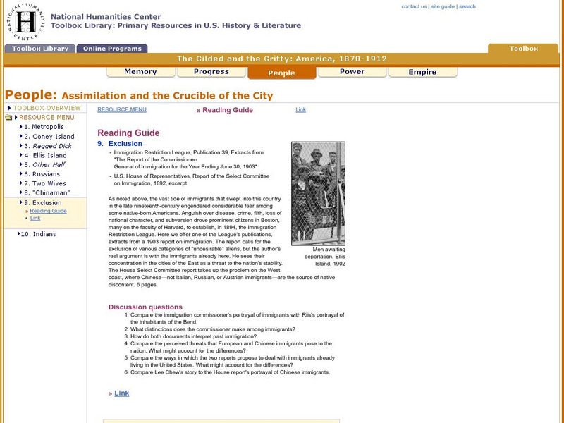 National Humanities Center: Toolbox Library: People: Assimilation and the Crucible of the City: Exclusion