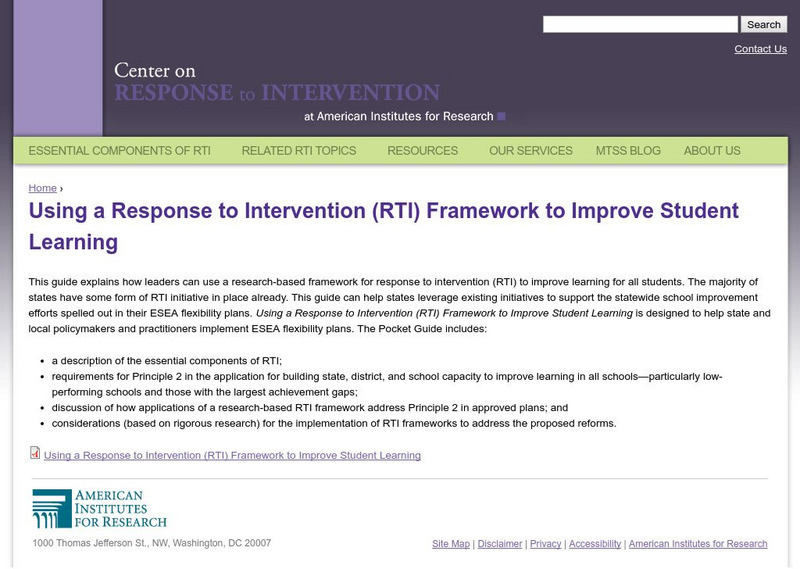 Center on Response to Intervention: Using Rti to Improve Student Learning