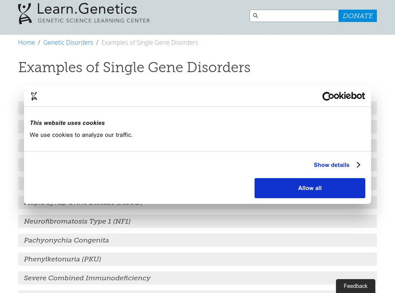 University of Utah: Genetic Science Learning Center: Examples of Single Gene Disorders