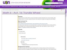 Sixth graders explore the uses of a trundle wheel. In this units of measurement lesson, 6th graders use trundle wheels to measure distances.
