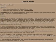 Students identify features and characteristics of a farm. Students recall events from the book, Tanya's Reunion. Students visit a local farm. Students sing the song Old MacDonald had a Farm and Farmer in the Dell while on the way to...