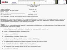 Second graders discover the causes of different types of weather. They draw pictures of the water cycle steps and answer worksheet questions. Students observe teacher-conducted demonstrations exemplifying condensation and evaporation.