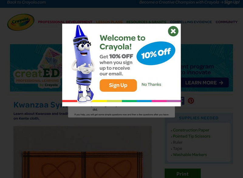 Use this activity from Crayola as part of your Kwanzaa celebration. The lesson plan incorporates social studies and visual arts as students learn to create the traditional Adinkra weaving patterns used on Kente cloth. Combine several...