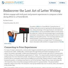 Scholars watch a video or listen to a story about writing letters, then discuss their importance. A scavenger hunt challenges them to identify common elements of friendly letters and create an anchor chart. Pupils write letters to a...