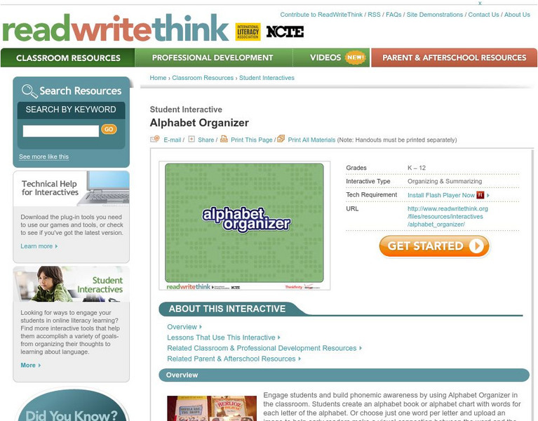 Read Write Think: Alphabet Organizer