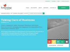 Students participate in a service project. In this stewardship instructional activity, students review the concepts of philanthropy and environmental stewardship. Students practice being good stewards by researching public areas in their...
