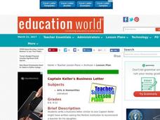 Students write a business letter similar to one Captain Keller might have written asking the Perkins Institution to recommend a teacher for his daughter in The Miracle Worker.