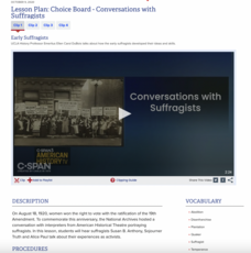 Celebrate 100 years of women's suffrage by planning a re-enactment of famous women discussing their fight. After learners view a series of interviews with famous women played by actors, including Susan B. Anthony, Sojourner Truth, and...