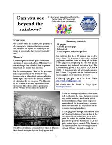 Did you realize the visible light spectrum is less than three percent of the electromagnetic spectrum? A hands-onlesson includes five activities and experiments for scholars to explore and discover many advanced science concepts. They...