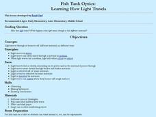 Students study concepts associated with light. For this light lesson, students observe an demonstration by the teacher. They examine reflection and refraction of light and name things that reflect light and those that refract it. They...