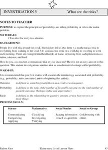 Students use dice to determine the risk of being exposed to radon. They practice using new vocabulary related to probability and ratios. They make predictions about the results and record their observations.